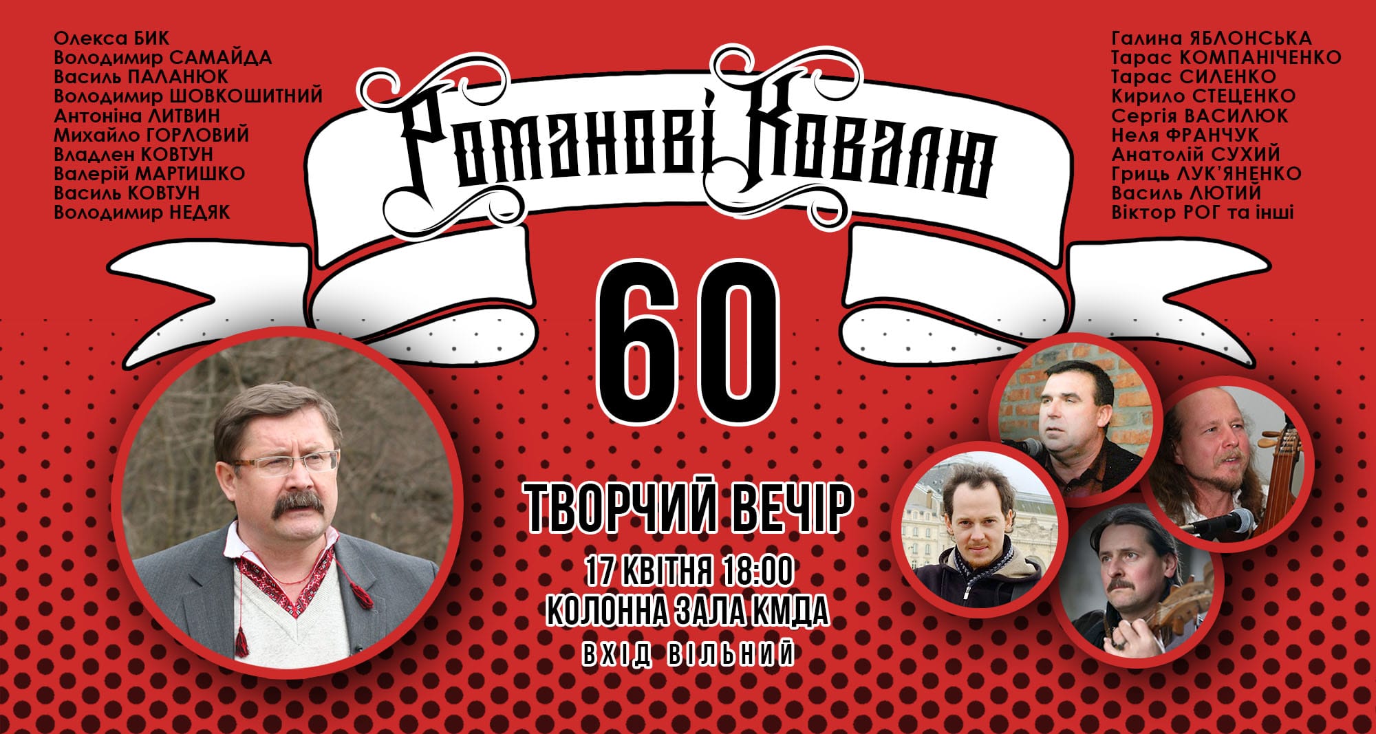 Запрошуємо на творчий вечір Романа КОВАЛЯ з нагоди його 60-ліття та 30-ліття громадсько-політичної діяльності, який...