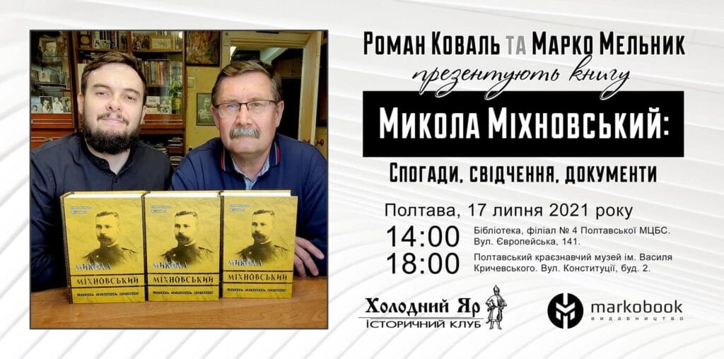 17 липня в Полтаві відбудуться зустрічі з Романом Ковалем та Марком Мельником. Вони презентують книгу «Микола Міхновський. Спогади, свідчення, документи».